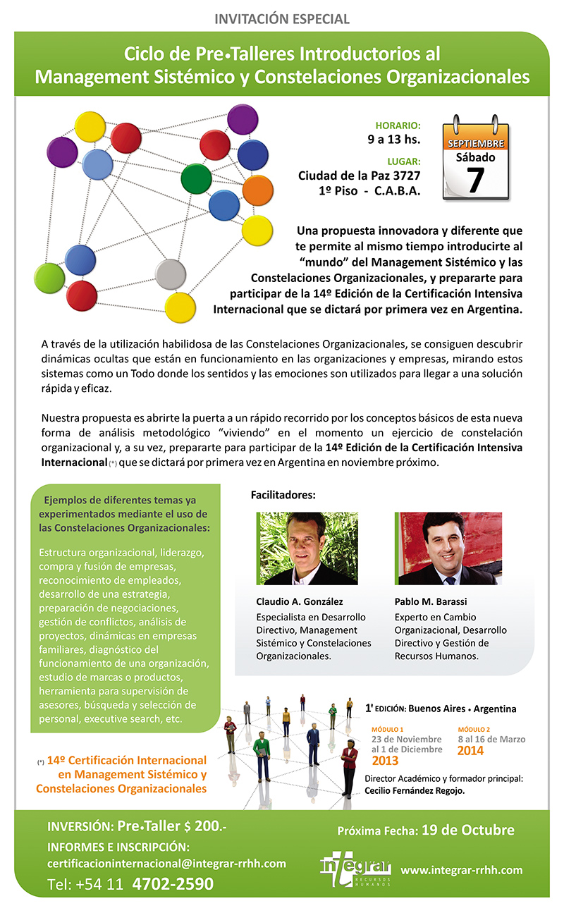 Ciclo de Pre-Talleres introductorios al management sistémico y constelaciones organizacionales por Ernesto Frías | Sep 7, 2013 | Eventos | 0 Comentarios